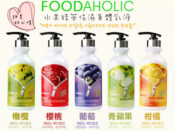 | 韓國FOODAHOLIC-水果精華保濕身體乳液-【韓國 FOODAHOLIC】水果精華保濕身體乳液,五種款式任選,最低一瓶只要105元!平均每瓶最低只要105元起(含運)即可購得【韓國FOODAHOL 售價:105