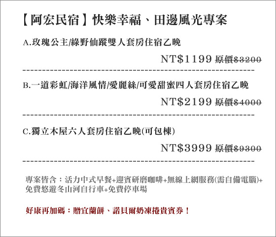 阿宏民宿-快樂幸福-田邊風光專案,東部,特色民宿 . 只要1199 元起即可享 ...