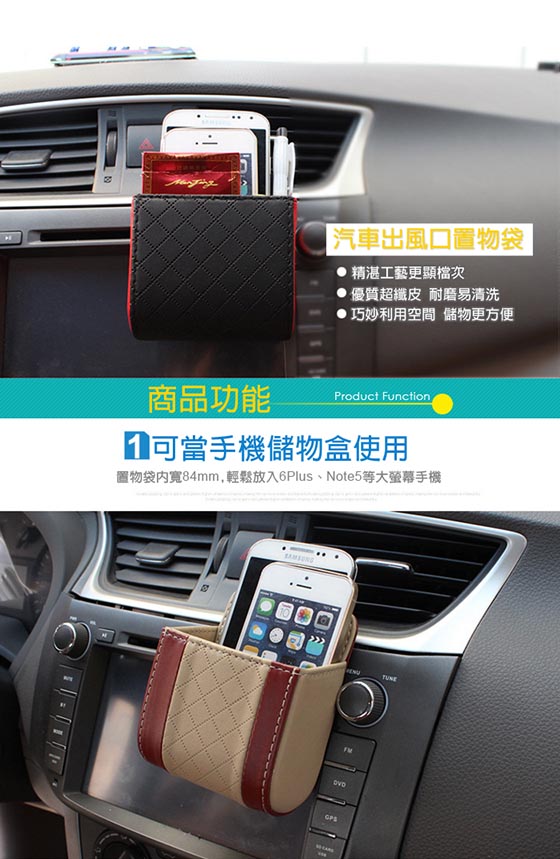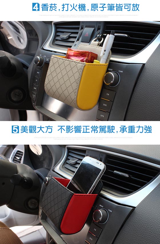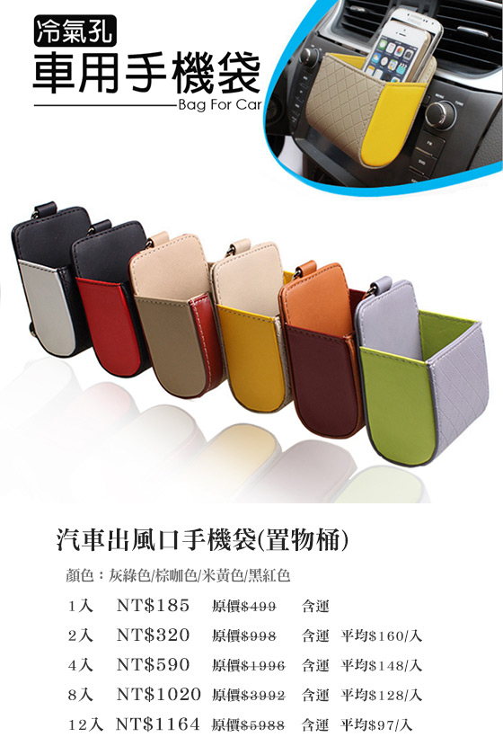 | 汽車出風口手機袋(置物桶)-巧妙運用空間,車內收納更方便!優良材質精緻做工,不遮蔽視線,可收納零錢、大螢幕手機、名片等雜物!平均每入最低只要97元起(含運)即可享有汽車出風口手機袋(置物桶)1入/2入 售價:97