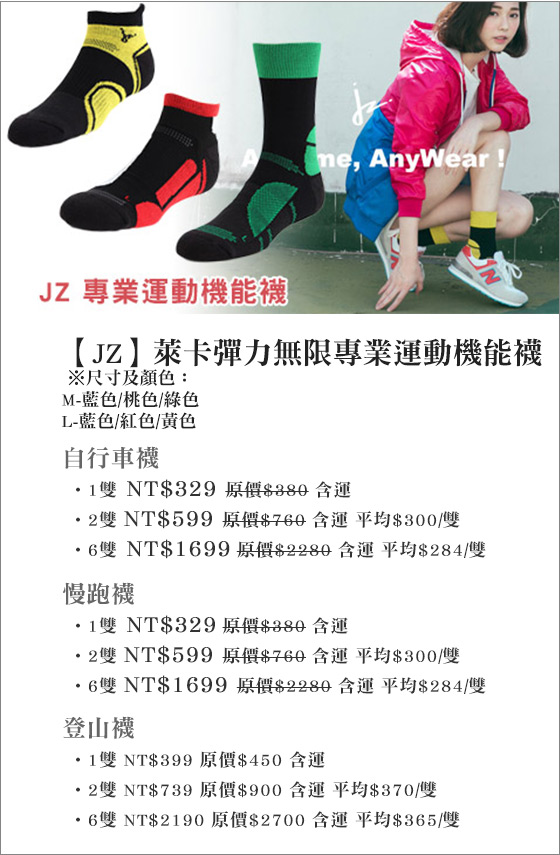 | JZ-萊卡彈力無限專業運動機能襪-讓你隨心所欲趴趴走!抗鬚髮癬菌效能,獨立左右腳設計,足弓腳踝保護有效減壓,任何時刻都有絕佳舒適穿感!只要329元起(含運)即可購得【JZ】原價最高2700元萊卡彈力無 售價:329