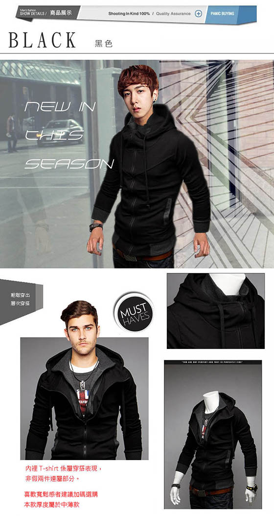 | Webb不吝嗇分享他的生活點點滴滴;包括網路上購買的任何東西.走過路過,千萬不要錯過!請參閱詳細商品資訊假兩件型男經典連帽外套下面是整理過的資料;有假兩件型男經典連帽外套與其他類似值得參考的商品清單.最近我也在找假兩件型男經典連帽外套的相關資訊~最近有些網友在問假兩件型男經典連帽外套要去哪裡買最便宜呢? | | 詳細商品說明 | ※其他推薦※