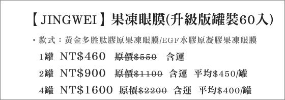 【JINGWEI】EGF水膠原凝膠果凍眼膜(升級版罐裝60入)