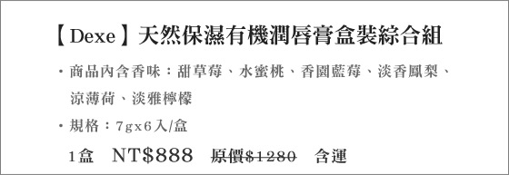 品名:【Dexe】天然保濕有機潤唇膏盒裝綜合組